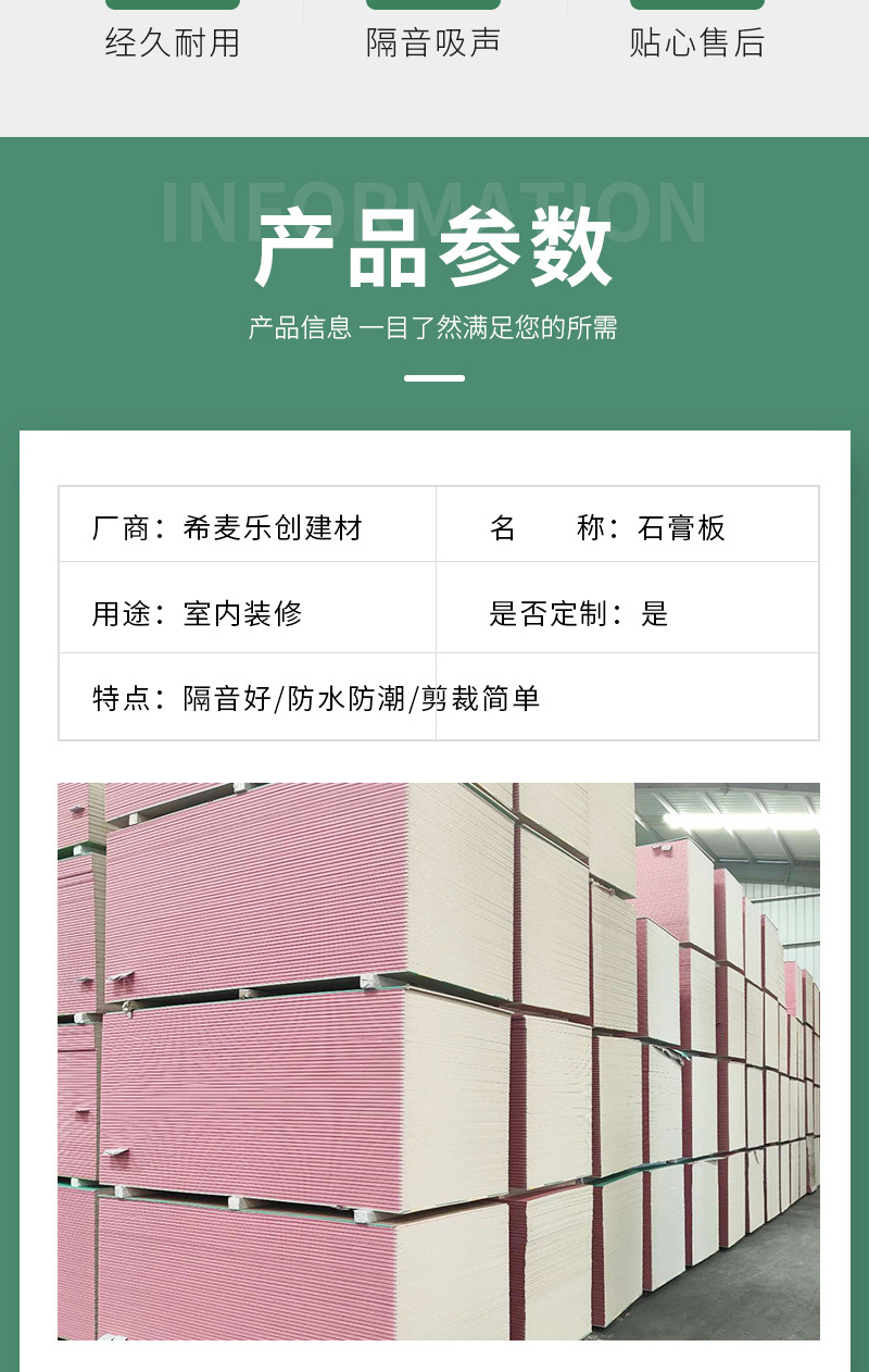 防火纸面石膏板 现货吊顶材料 家装建材工程防火吊顶石膏板